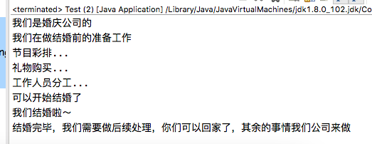 System.out.println("结婚完毕,我们需要做后续处理,你们可以回家了,其余的事情我们公司来做");